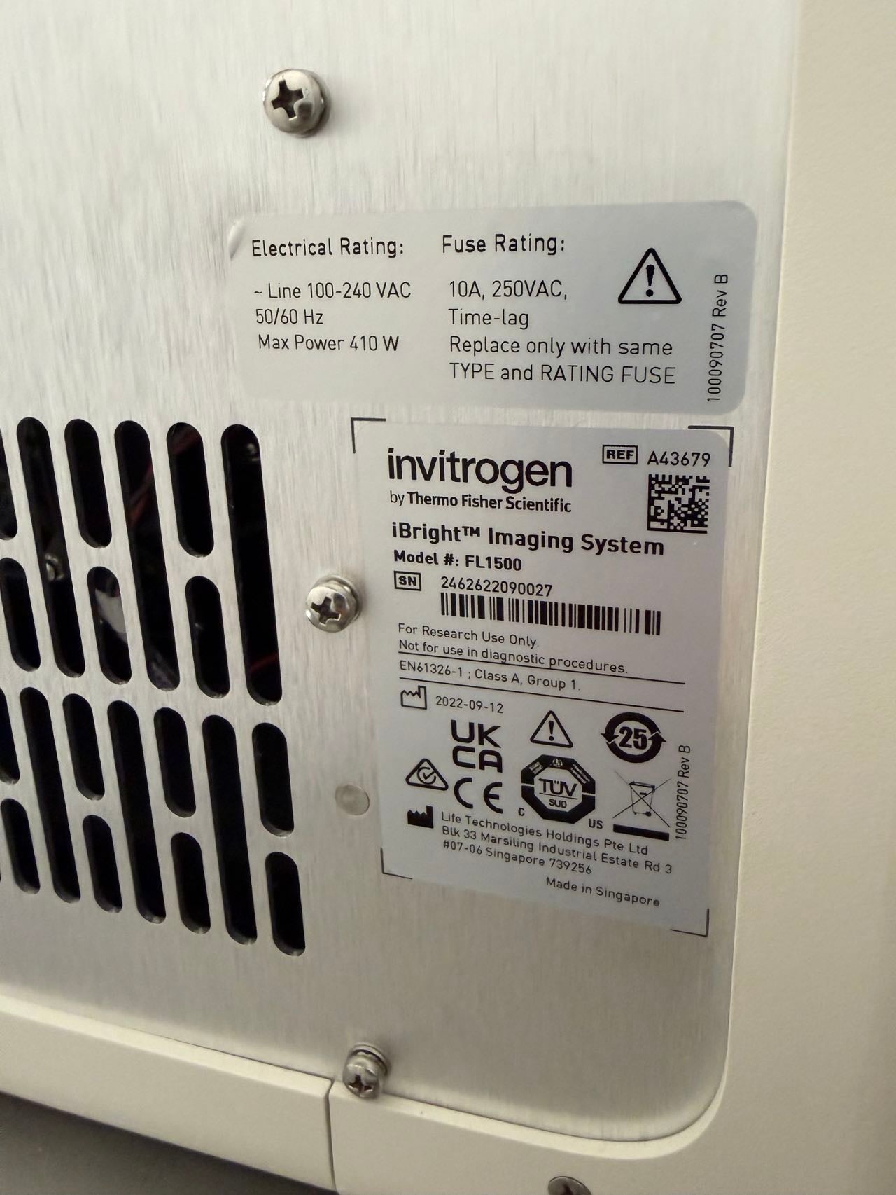 The Invitrogen iBright FL1500 Imaging System is a compact, all-in-one digital imaging system designed for chemiluminescence, fluorescence, and colorimetric detection in Western blot and gel documentation applications. It offers fast image acquisition, intuitive touchscreen operation, and reliable performance for routine molecular biology workflows.